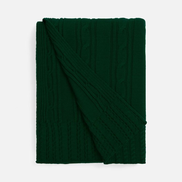 - Тонкое переплетение вертикальных кос-жгутов создает благородный стиль, где простота линий встречается с изысканной рельефной текстурой. Плед из мягкого акрила сохраняет тепло, оставаясь удивительно легким и воздушным.