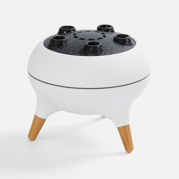 Помимо стандартных струек пара посередине крышки, Cloudini умеет выпускать маленькие облачка влажного воздуха из 5 отверстий по окружности поочередно или динамически — в такт музыке. Устройство реагирует на звуковые колебания и выстраивает интенсивность распыления в зависимости от мелодии.