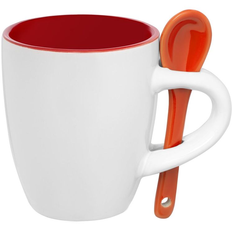 Кофейная кружка Pairy с ложкой, красная с оранжевой