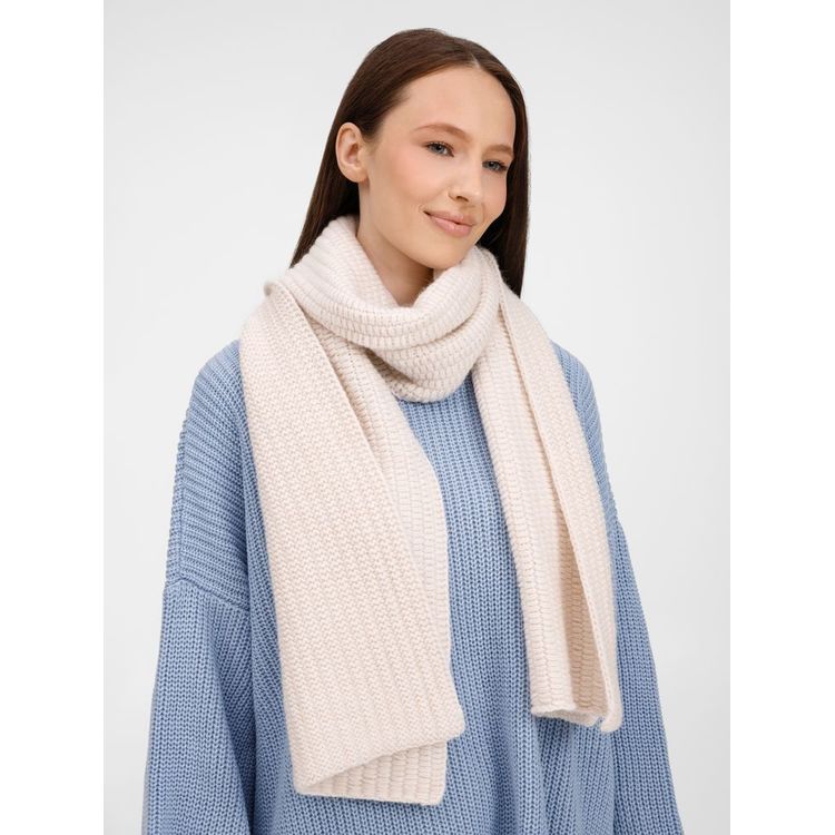 - Однослойный шарф Frissonelle фактурной вязки — универсальный аксессуар: полушерстяная пряжа с выразительным рельефным узором создает объем, даря тепло и ощущение уюта. Сдержанная палитра и лаконичный дизайн делают его гармоничным дополнением к пальто, куртке или пуловеру.