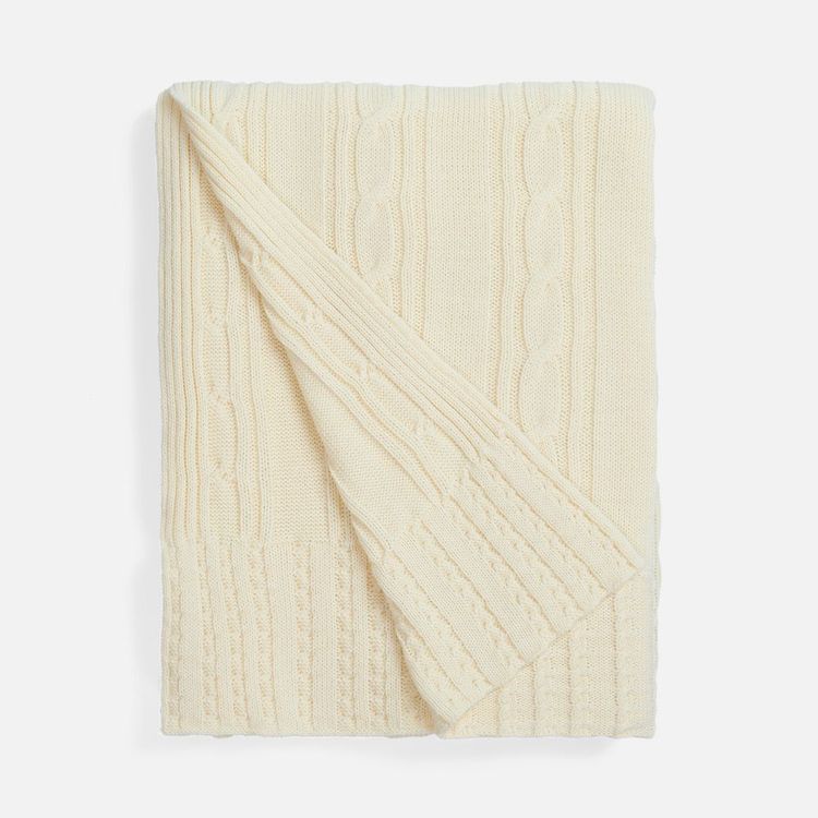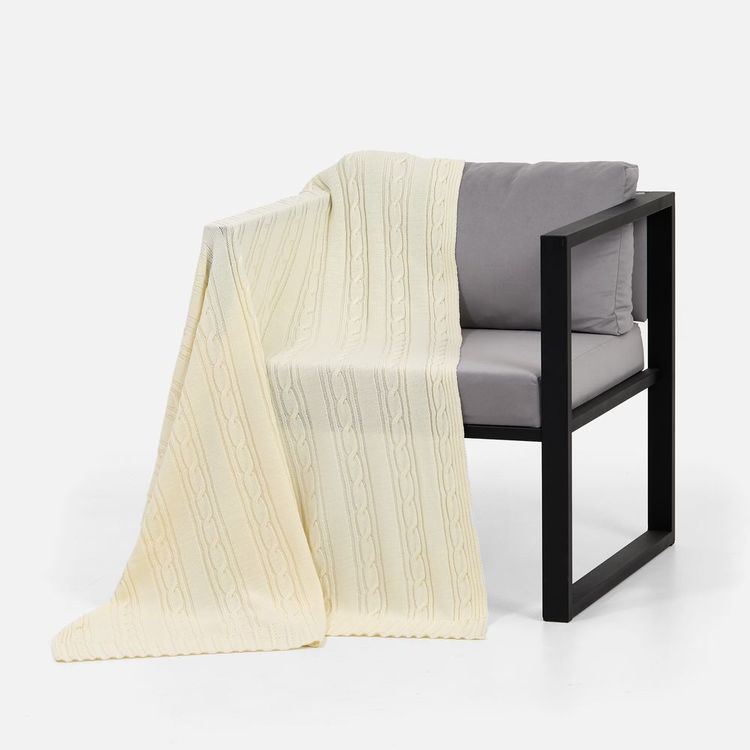 - Тонкое переплетение вертикальных кос-жгутов создает благородный стиль, где простота линий встречается с изысканной рельефной текстурой. Плед из мягкого акрила сохраняет тепло, оставаясь удивительно легким и воздушным.