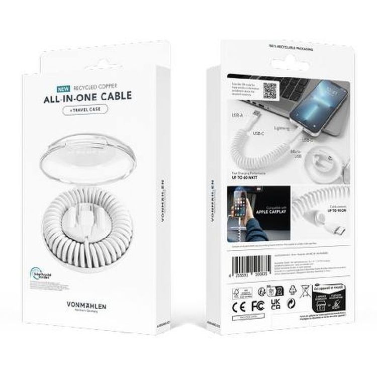 Кабель Vonmahlen Allroundo Eco для быстрой зарядки, белый