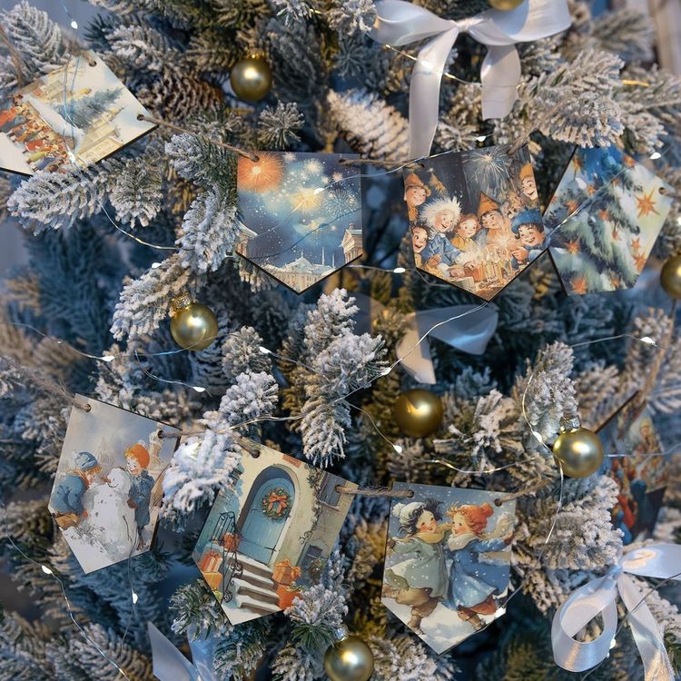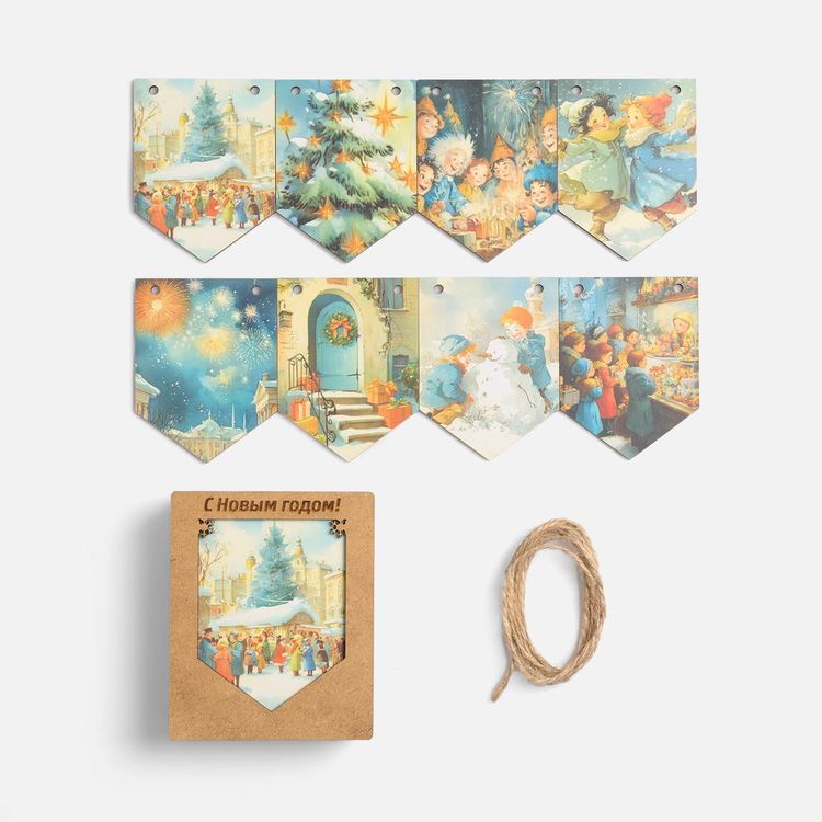 - Очаровательная гирлянда из деревянных флажков с винтажными рождественскими иллюстрациями для создания уютной праздничной атмосферы дома или в офисе. Каждый флажок украшен теплым, душевным сюжетом — будто сошедшим со старинных открыток. Они с легкостью перенесут в мир новогодних сказок и детских фантазий — туда, где и хочется оказаться в самое волшебное время года!