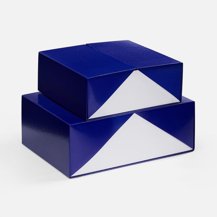 - Коробка из переплетного картона 2 мм с оригинальной конструкцией: две симметричные створки открываются, создавая эффектную презентацию содержимого. Складная система на предустановленный двусторонний скотч делает сборку коробки быстрой и интуитивно понятной.
