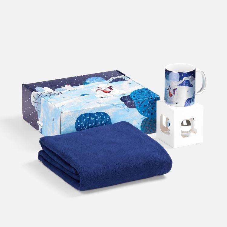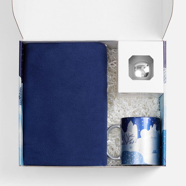 - Набор «Праздничный полюс» приглашает окунуться в мир настоящей зимней эстетики и волшебной безмятежности! Это новогодний ансамбль в едином нарядном стиле: мягкий флисовый плед, кружка с тематическим принтом и изящный елочный шарик. Немного сказочные изображения с милыми белыми мишками на подарочной коробке и кружке задают тон всему набору, вызывая радость и улыбку.