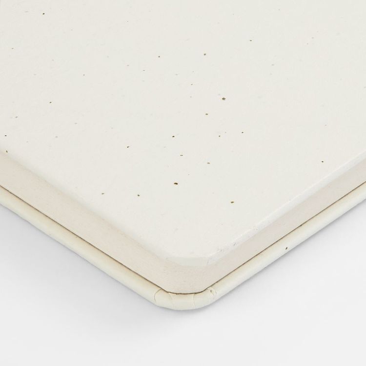 Бумага и обложка произведены из переработанных пакетов из под молока. Обложка из картона плотностью 140 г/м² .Блок в линейку: