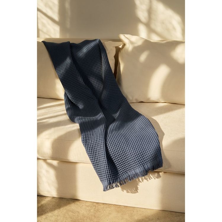 Создан из натурального хлопка с выраженной текстурой вафельного переплетения. Он легкий, дышащий и удивительно приятный на ощупь — идеальный баланс между уютом и минимализмом.