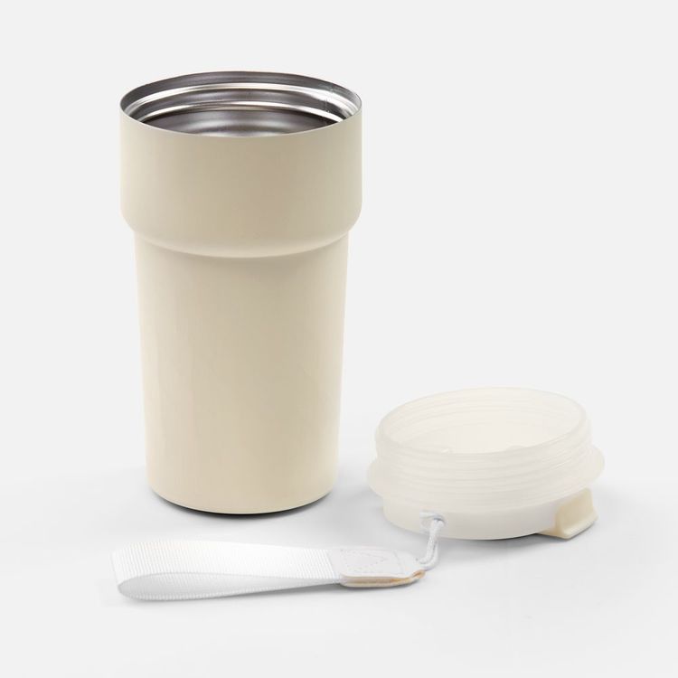 Двухслойная конструкция из нержавеющей стали с вакуумной изоляцией корпуса сохраняет напитки горячими (60 °C) или прохладными (10 °C) в течение 6 часов. При изменении температуры меняется цвет индикатора: для холодной воды он зеленый, для теплой — оранжевый, и для горячей — красный.