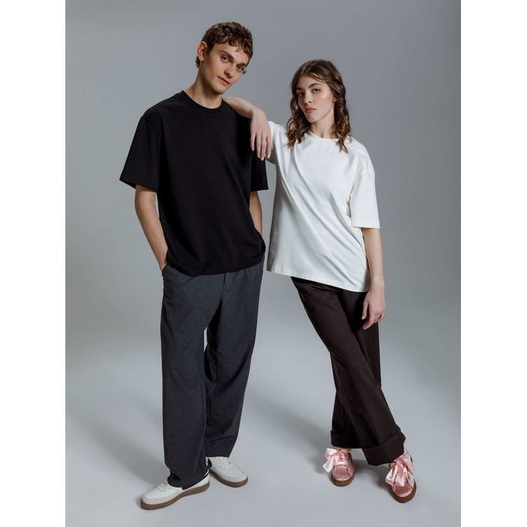 Футболка свободного кроя из хлопка пенье.- Круглая горловина выполнена резинкой 1x1