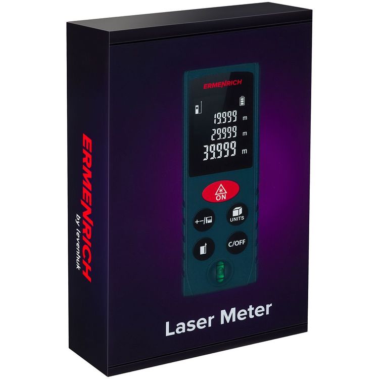 Ermenrich Reel GK40 — лазерная рулетка для самого широкого применения при измерении линейных размеров, площадей и объемов помещений, зданий и сооружений. Пригодится для уточнения линейных размеров помещений и деталей, а также их площадей и объемов.