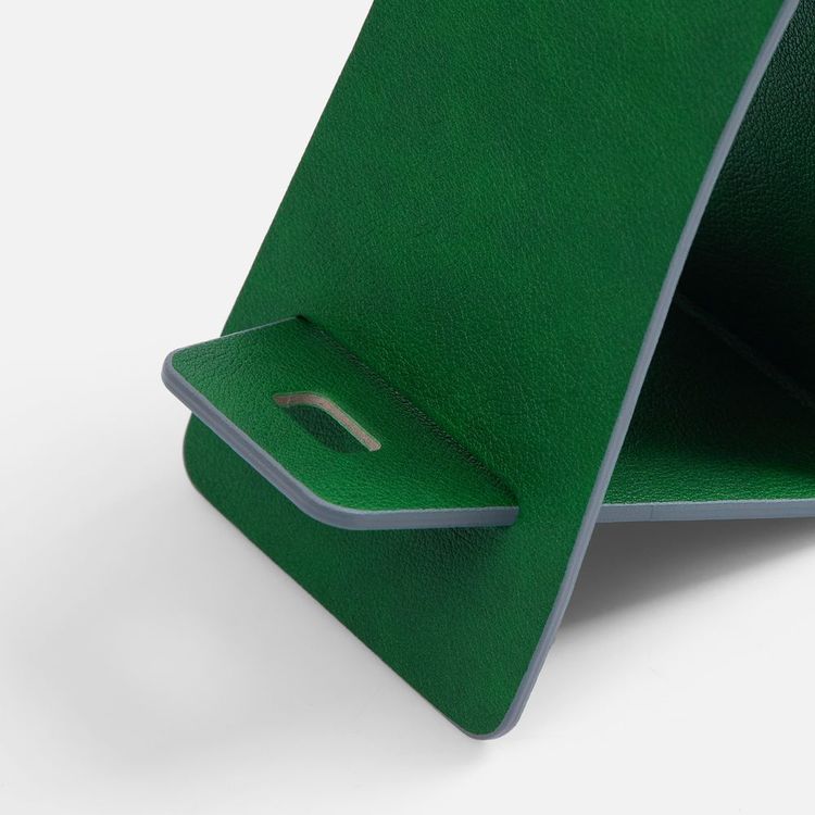 - Складная подставка для телефона с вырубкой под шнур зарядного устройства. Выполнена из материала Petrus.