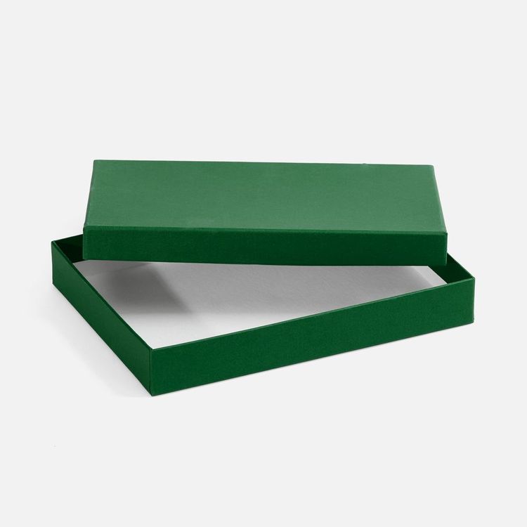 Коробка изготовлена из переплетного картона, кашированного гладкой дизайнерской бумагой Malmero.