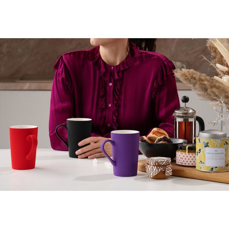 - Благодаря бархатной поверхности soft-touch кружку не хочется выпускать из рук ни на секунду. Она точно не будет пылиться на полке в шкафу. Необычная форма и яркий цвет помогут освежить дизайн любой кухни.