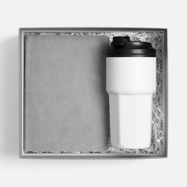 - Коробка из переплетного картона, кашированная дизайнерской бумагой Malmero.
