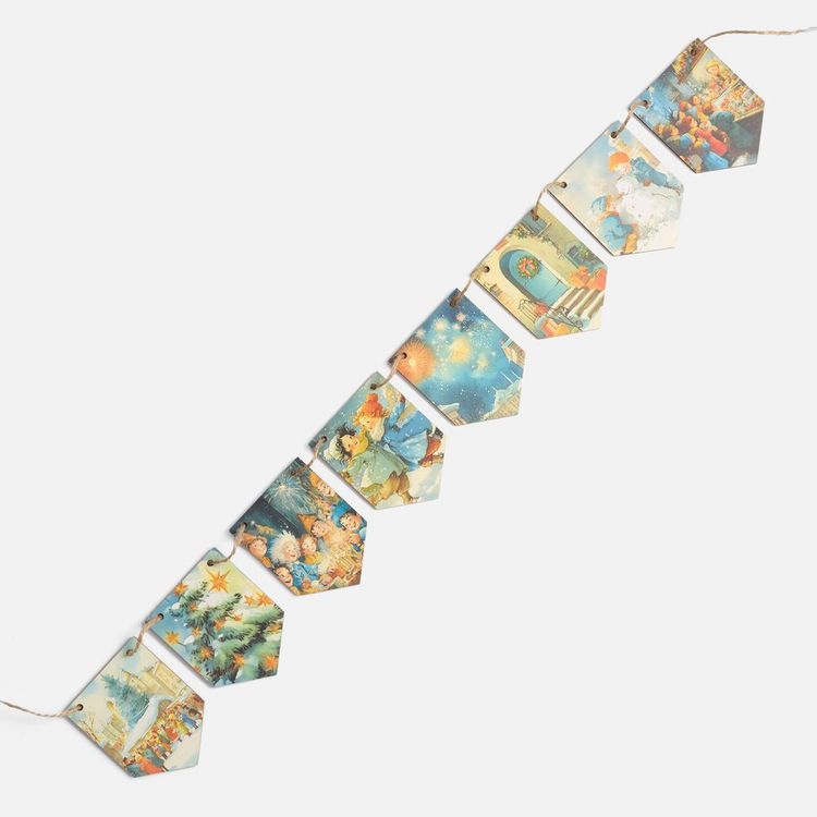 - Очаровательная гирлянда из деревянных флажков с винтажными рождественскими иллюстрациями для создания уютной праздничной атмосферы дома или в офисе. Каждый флажок украшен теплым, душевным сюжетом — будто сошедшим со старинных открыток. Они с легкостью перенесут в мир новогодних сказок и детских фантазий — туда, где и хочется оказаться в самое волшебное время года!