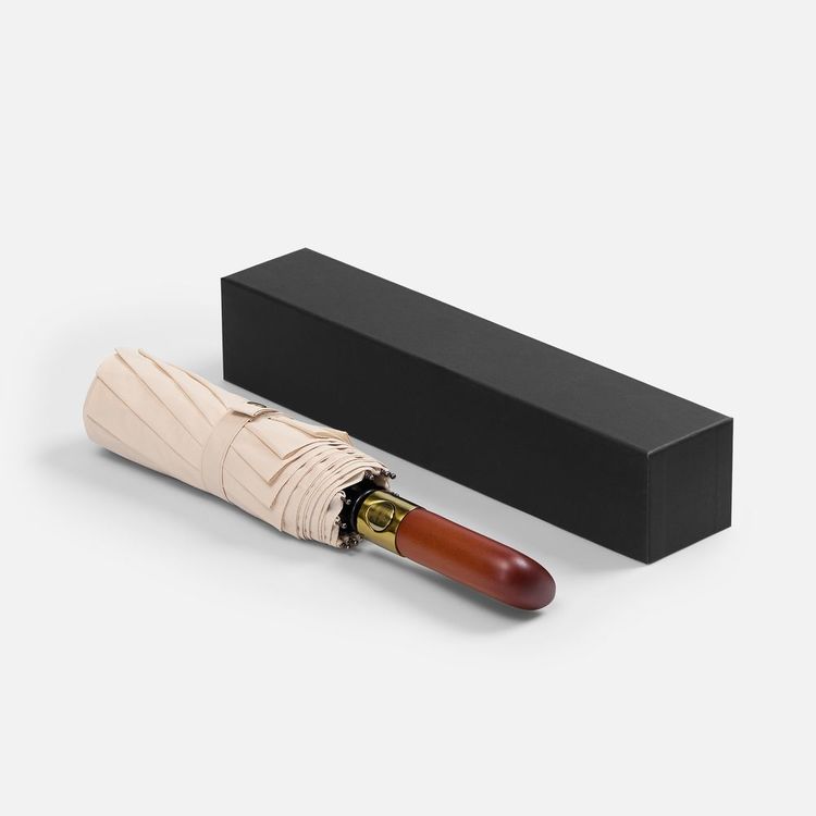 - Деревянная прямая ручка с кнопкой открытия и закрытия зонта
