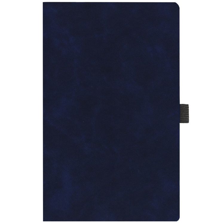 Ежедневник с гибкой обложкой, выполнен из материала Nubuck Touch, темно-синий XX, дополнен ляссе и петлей-резинкой для ручки черного цвета.