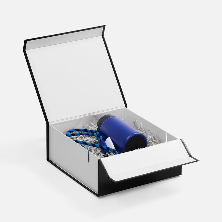 - Плотная коробка из переплетного картона толщиной 2 мм с практичной конструкцией на двух створках. Складная система с уже нанесенным двусторонним скотчем позволяет быстро собрать коробку без дополнительных инструментов. Лайнер с полуглянцевым ламинированием устойчив к повреждениям и надолго сохраняет безупречный вид.