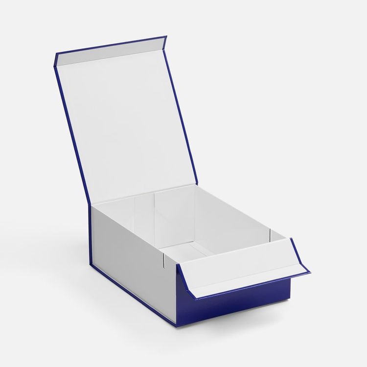 - Плотная коробка из переплетного картона толщиной 2 мм с практичной конструкцией на двух створках. Складная система с уже нанесенным двусторонним скотчем позволяет быстро собрать коробку без дополнительных инструментов. Лайнер с полуглянцевым ламинированием устойчив к повреждениям и надолго сохраняет безупречный вид.