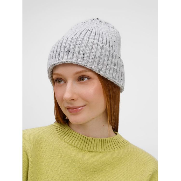 - Шапка-бини с отворотом выполнена крупной резинкой из мягкой акриловой пряжи, которая создает дополнительный объем и хорошо сохраняет тепло. Благодаря оригинальному дизайну она позволит создать запоминающийся образ со стильным и лаконичным акцентом.