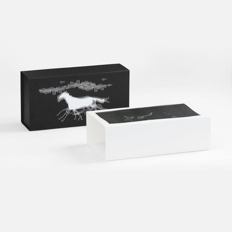 - «Динамика успеха» — интерактивная упаковка, дизайн которой говорит сам за себя. Она как бы напоминает: настоящий успех начинается с первого шага — и продолжается в каждом следующем. При открытии коробки изображение лошади словно оживает: стоит отодвинуть шубер — и конь срывается в бег.