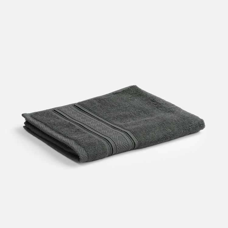 Темные приглушенные оттенки и полоса с орнаментом в классическом стиле делают это полотенце элегантным и функциональным аксессуаром в ванной комнате.