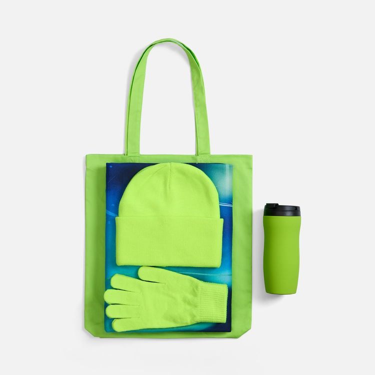 - Набор «Северное сиятельство» — это выражение заботы и нетривиальный комплимент в одном шопере! В нем тонко переплетены дух современного города и очарование северной сказки. Его элементы лаконичны и функциональны, а главная изюминка — живописный плед с изображением aurora borealis — добавляет ноту настоящего чуда.