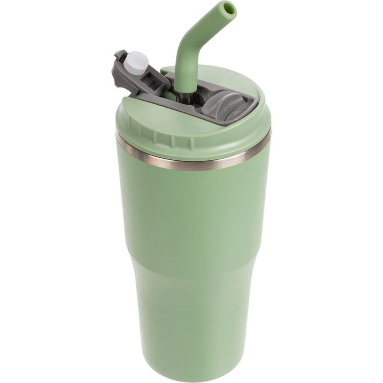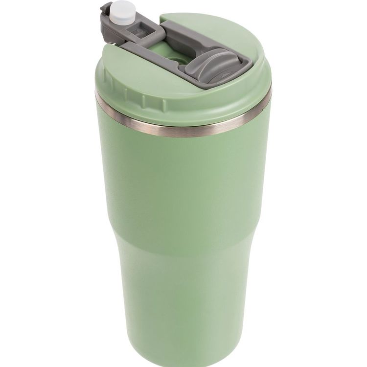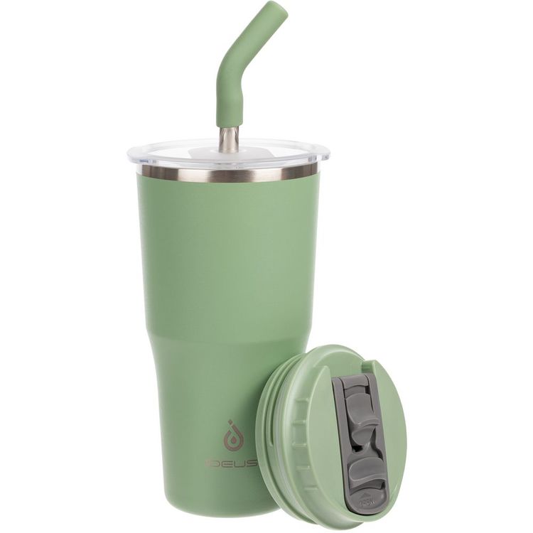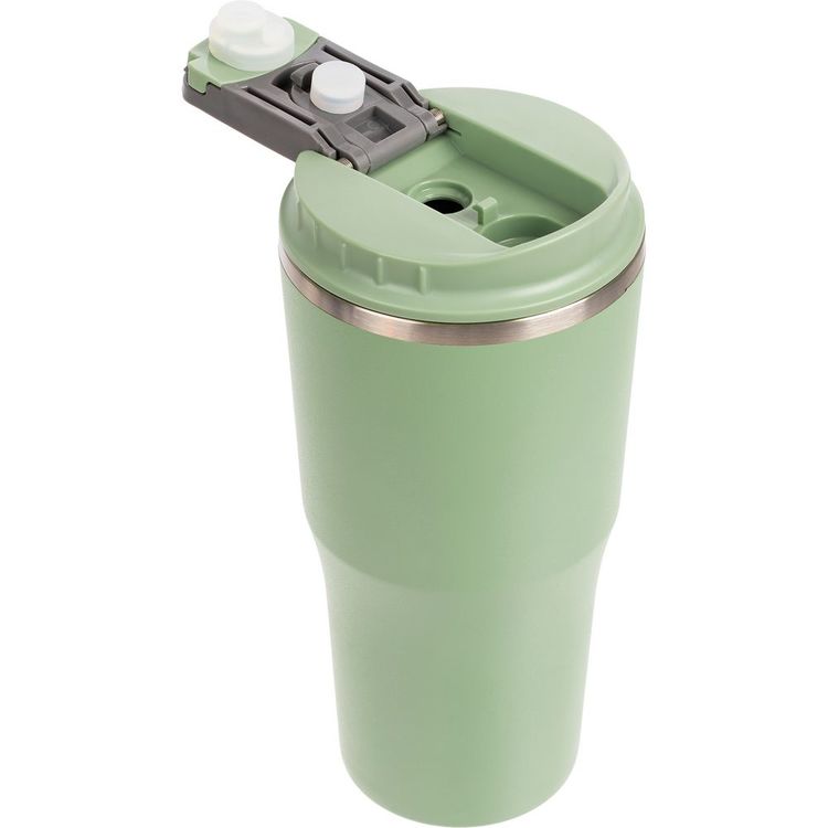 - 2 крышки в комплекте: одна на 100% герметичная с механизмом блокировки отверстия для питья, вторая — с отверстием для трубочки