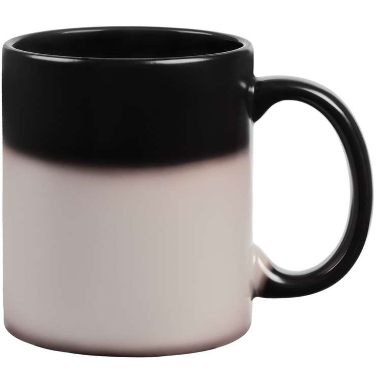 - Кружка-хамелеон обладает интересным эффектом: стоит налить горячую воду, и ее цвет поменяется с черного на белый.Емкость 330 мл.