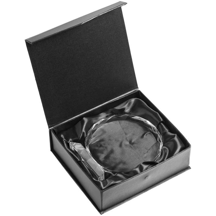 - Награда изготовлена из хрусталя К9, в основе которого лежит оптическое боросиликатное стекло. Эту марку хрусталя отличает низкий процент посторонних включений, высокий показатель преломления и высокая прозрачность — идеальные качества для изготовления наград премиального уровня.