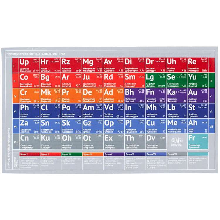 - Рабочий коллектив — как сложное химическое соединение. В нем есть катализаторы важных процессов, положительно заряженные частицы, свободные радикалы и даже кристально честные элементы.Одни вынашивают атомные идеи, другие полностью растворяются в процессе, третьи, приняв газообразное состояние, витают в облаках. Между элементами постоянно возникают взаимные реакции, продуктом которых становятся новые полезные вещества, например, прибыль. Кружка с элементом из Периодической системы разделения труда станет оригинальным подарком коллеге.Кружка поставляется в коробке и сопровождается открыткой, на которой представлена вся химическая таблица. Емкость 330 мл.Кружку с принтом не рекомендуется мыть в посудомоечной машине, а также использовать для мытья абразивные моющие средства.
