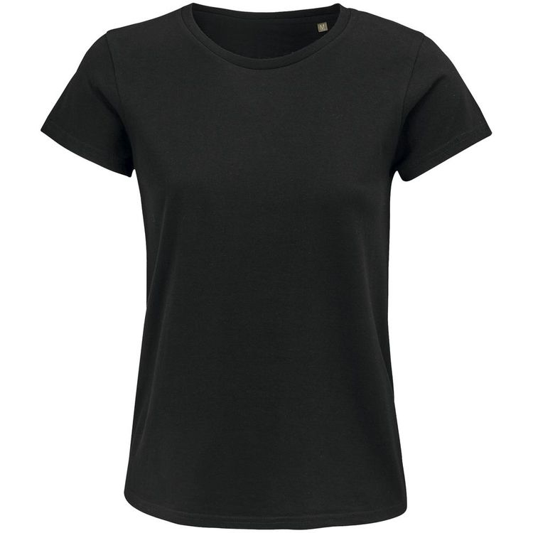 - Женская бесшовная облегающая футболка из органического хлопка с круглым вырезом.