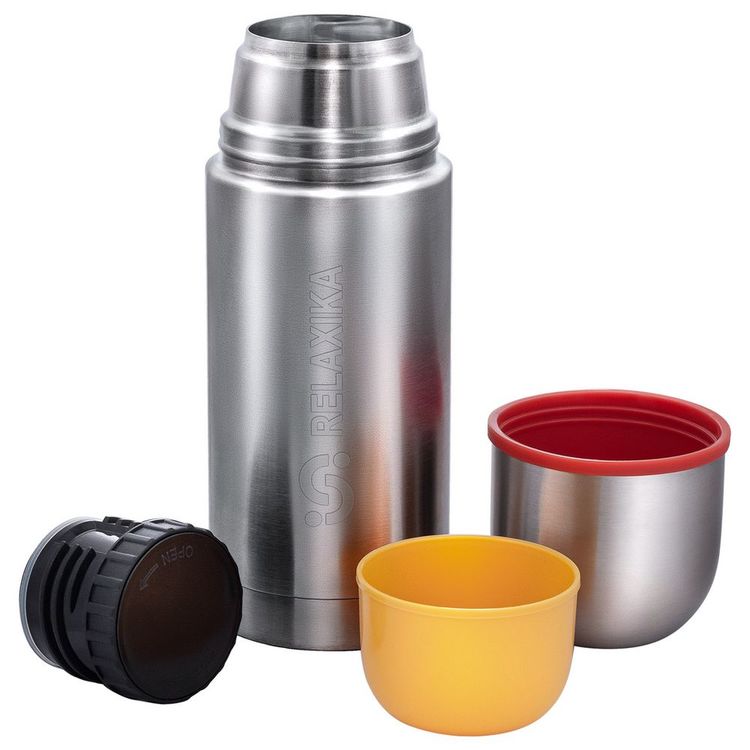 - Классический термос Relaxika Duo с высокими показателями удержания температуры напитка прекрасно подойдет для походов, путешествий, спорта и ежедневного использования. Дополнительная чашка позволит легко разделить напиток с друзьями.Емкость 500 мл.Конструкция с двойными стенками и вакуумной изоляцией сохраняет содержимое холодным до 34 часов, горячим — до 28 часовДве чашки в комплекте: основная 200 мл, дополнительная 100 млНе содержит бисфенол АНадежная закручивающаяся пробка с силиконовым кольцом защитит от протеканияМыть только вручнуюПоставляется в фирменной упаковке.