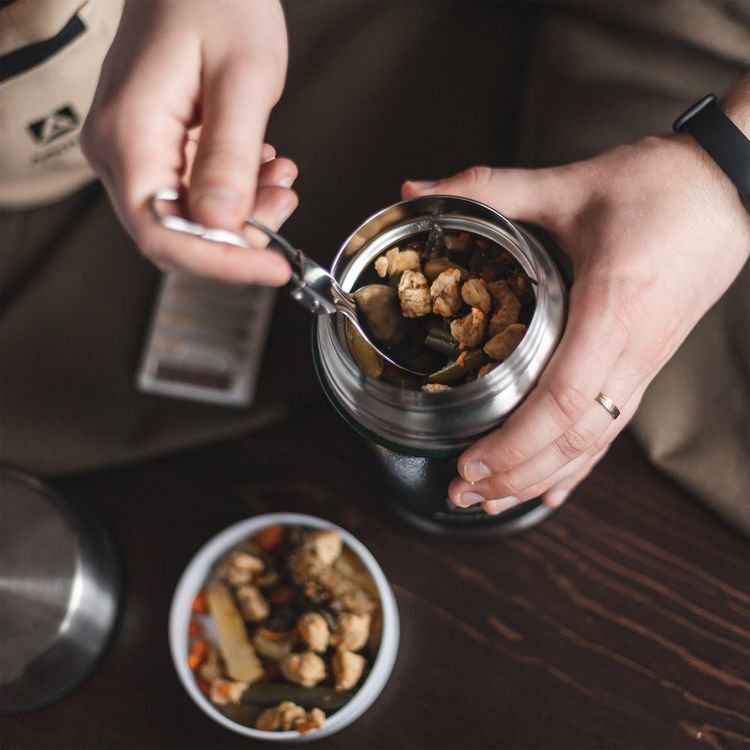 - Готовый комплект для похода на природу: термос для еды с широким горлом и ударопрочным покрытием и легкая складная ложка в термочехле.Емкость 500 мл.Конструкция с двойными стенками и вакуумной изоляцией сохраняет температуру до 12 часовМолотковая эмаль защитит термос от сколов и царапин Широкое горло Вместительная крышка-тарелкаТермочехол и складная ложка в комплектеНе содержит бисфенол А