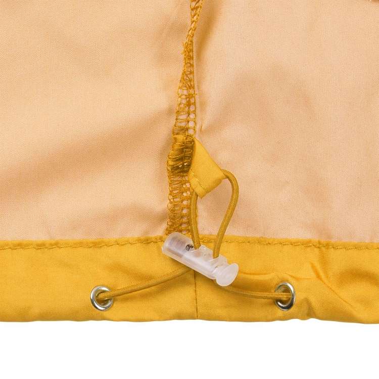 Тонкая гладкая ткань дюспо с притягательным матовым блеском почти бесшумна в использовании и пригодна для большого количества цветов печати. Качественный пошив ветровки добавляет ей презентабельности и гарантирует долгое использование, а яркий цвет привлекает внимание и не выгорает со временем.