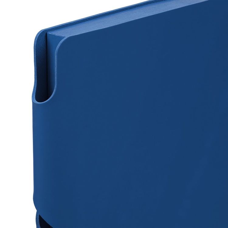 - Гибкая обложка выполнена из материала Soft Touch Ultra, синий НН и Latte, синий НН (внутренняя часть обложки). Внутри корешка — специальное место для крепления ручки размером до 15х1 см.Блок 985, без информационного блока:Кол-во страниц — 256;Бумага — белая, плотность 70 г/м²;Обрез блока — синий;Форзац и нахзац — синий.