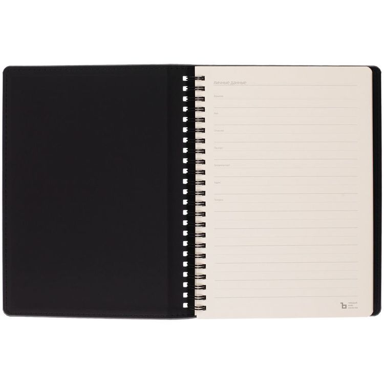 - Ежедневник с блоком на пружине в твердой обложке, выполнен из материалов Nubuk Touch, серый СС и Soft Touch, черный AA.Блок 205, без календарной сетки и информационного блока: Кол-во страниц — 256;Бумага — тонированная, плотность 70 г/м².