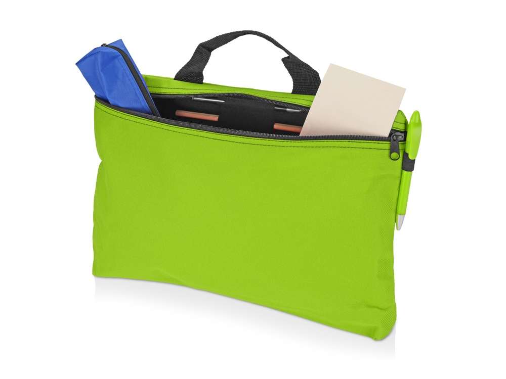- Сумка для конференций с ручкой, застежкой на молнии и держателями для ручек снаружи и внутри сумки. Подходит для документов формата А4. Трафаретная печать (1 цвет (цветные изделия)) на данный товар осуществляется бесплатно. Оплачивается только настройка оборудования в размере 10000 рублей на весь тираж.