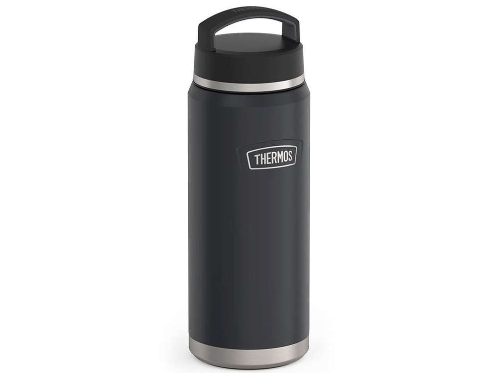 - THERMOS, как компания-создатель первого в мире термоса, открывает новую эпоху изотермических товаров уникальной серией ICON™. Статус культовой она приобрела по достоинству, сочетая традиционное качество и инновации, призванные сделать жизнь людей комфортнее. Модель юбилейной линейки ICON™IS-212 GT впечатляет не только своим безупречным внешним видом, но и высокими температурными характеристиками. Благодаря глубокой вакуумной изоляции и особенностям конструкции содержимое термобутылки сохраняется горячим не менее 18 часов, а холодным – в течение суток. Оригинальность и эксклюзивность модели подтверждается пятью новыми патентами на элементы конструкции, обеспечивающие максимальное удобство при использовании термобутылки. Вместительный термос универсален и может пригодиться для хранения не только напитков, но и еды - за счёт горловины Dura-Use™, диаметр которой шире обычной. Еще одна особенность горловины – скруглённый край для комфорта при питье непосредственно из бутылки. Термобутылку легко носить в руке или прикрепить к рюкзаку благодаря оригинальной конструкции крышки-пробки Dura-Shield™ с прочной литой ручкой и рельефной накладкой с противоскользящим эффектом. Система быстрого открывания и закрывания Rapidcapтм минимизирует влияние температуры окружающей среды на содержимое термоса: достаточно повернуть крышку-пробку на один оборот. Корпус термобутылки отличается особой прочностью и не боится ударов за счёт усиленного дна. Для устойчивости на любых поверхностях термобутылка оснащена противоскользящим силиконовым основанием Griptec™. Благородный внешний вид термоса подчёркивает оригинальный дизайн и покрытие глубокого цвета тёмного гранита. Многослойное покрытие True-Coat™ нанесено по технологии порошкового полимерного напыления: создаёт приятный тактильный эффект при удержании термобутылки в руке, обеспечивает особую износостойкость и сохраняет первоначальный вид изделия на многие годы. Долговечностью отличается и логотип, нанесенный методом лазерной гравировки. Великолепная упаковка графитового цвета, декорированная серебристым тиснением, – ещё одно достоинство термоса как подарка. Все материалы, из которых изготовлен термос являются экологичными и безопасными. Корпус и колба из пищевой коррозионностойкой стали 18/8 AISI 304 Stainless Steel, которая отличается инертностью по отношению к содержимому и не влияет на его вкус, поэтому напитки и еда сохраняются в термосе ароматными и свежими долгое время. Крышка-пробка из термостойкого пищевого пластика, не содержит бисфенол А (BPA free), не впитывает и не поглощает посторонние запахи. Термос полностью соответствует Международному стандарту качества EN12546-1:2000. Гравировка (CO2 лазер) (Без чернения) на данный товар осуществляется бесплатно. Оплачивается только настройка оборудования в размере 1100 рублей на весь тираж.