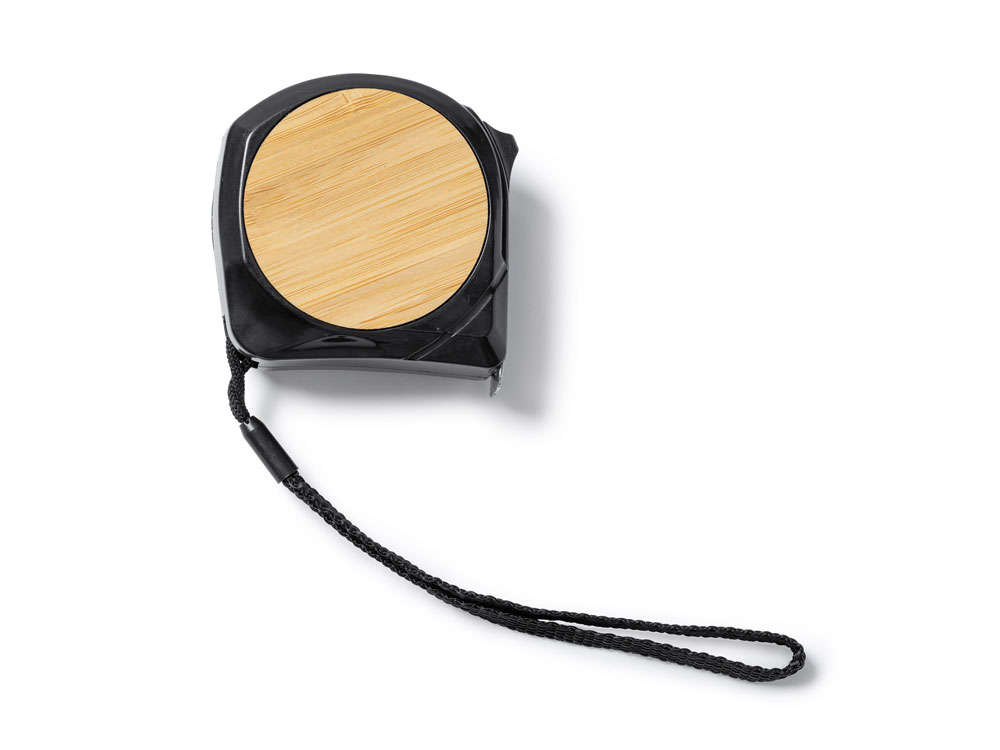 - Рулетка на 5 метров. Металлический зажим, ремешок для транспортировки и бамбуковые детали.