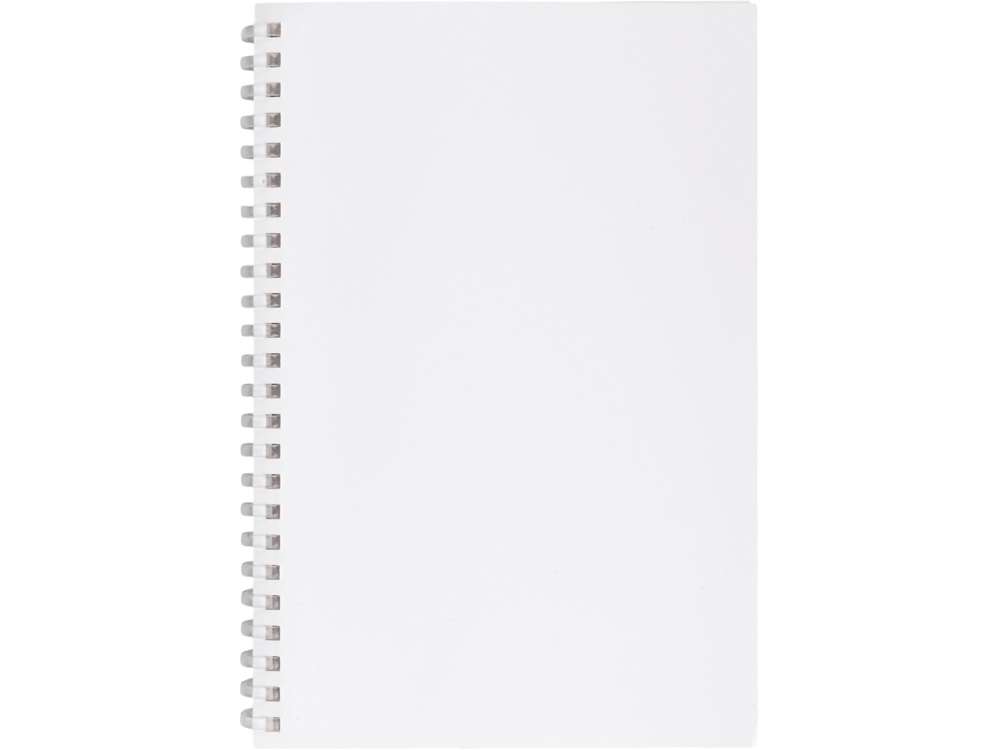 - Идеальный вариант для практичного сувенира. Мягкая прозрачная спираль облегчает блокнот, а гибкая обложка позволит сэкономить место в сумке, свернув блокнот. Блок из плотной бумаги 70 г/м2 разлинован в клетку. - формат А5; - 60 листов; - полезный промо-сувенир. Трафаретная печать по твердым материалам (1 цвет (белые изделия)) на данный товар осуществляется бесплатно. Оплачивается только настройка оборудования в размере 6400 рублей на весь тираж.