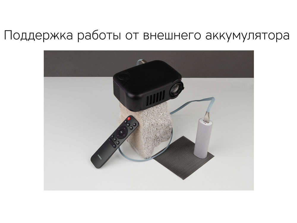 - • Портативный проектор. Работает от сети или аккумулятора • microSD и USB. Поддержка популярных форматов мультимедиа • 30 000 часов. Срок службы LED-лампы • Встроенный динамик Тампопечать (1 цвет (цветные изделия)) на данный товар осуществляется бесплатно. Оплачивается только настройка оборудования в размере 8200 рублей на весь тираж.