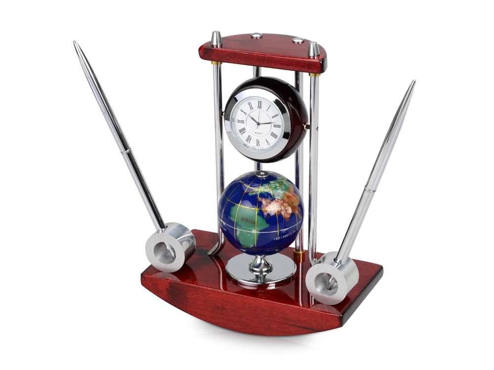 Настольный прибор Сенатор: часы с глобусом, две ручки на подставке