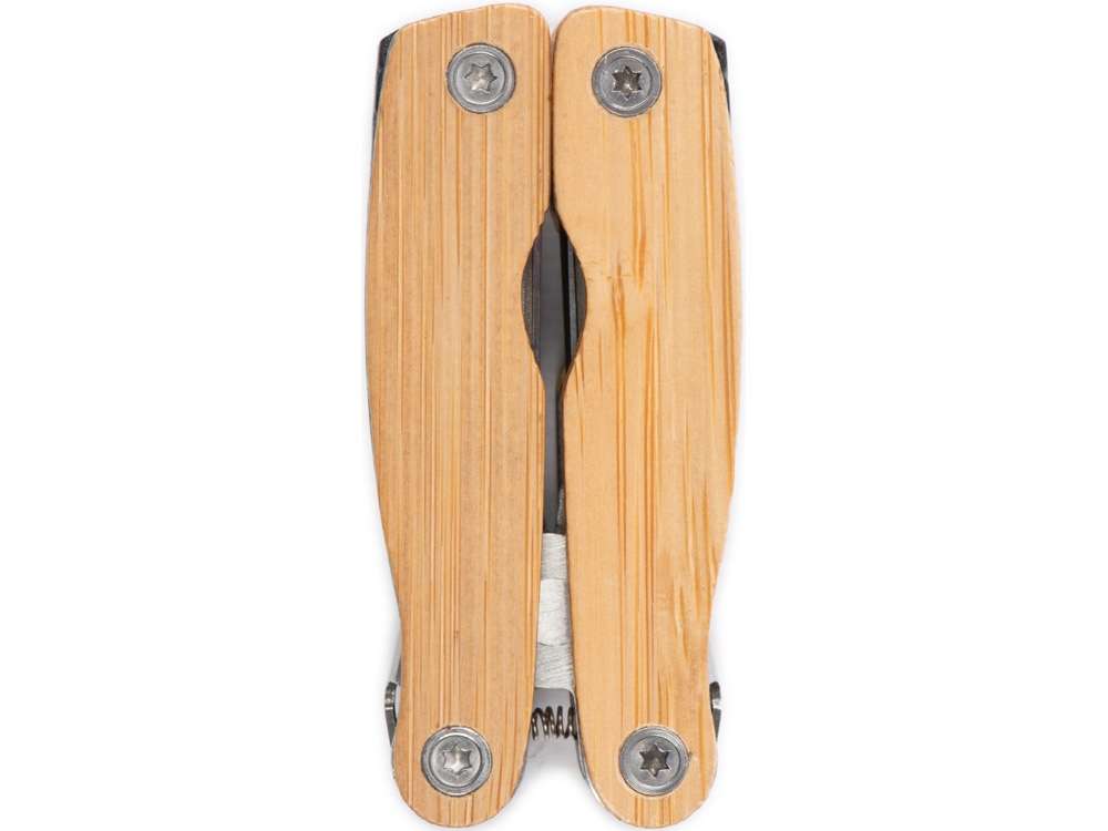 - Компактный мультитул на каждый день с корпусом из бамбука. Поставляется в коробочке с чехлом. - плоскогубцы - открывалка для бутылок - крестовая отвертка - нож универсальный - открывалка для банок - плоская отвертка 3 шт. - пила по дереву - напильники по дереву и металлу Гравировка (CO2 лазер) (Без чернения) на данный товар осуществляется бесплатно. Оплачивается только настройка оборудования в размере 1100 рублей на весь тираж.