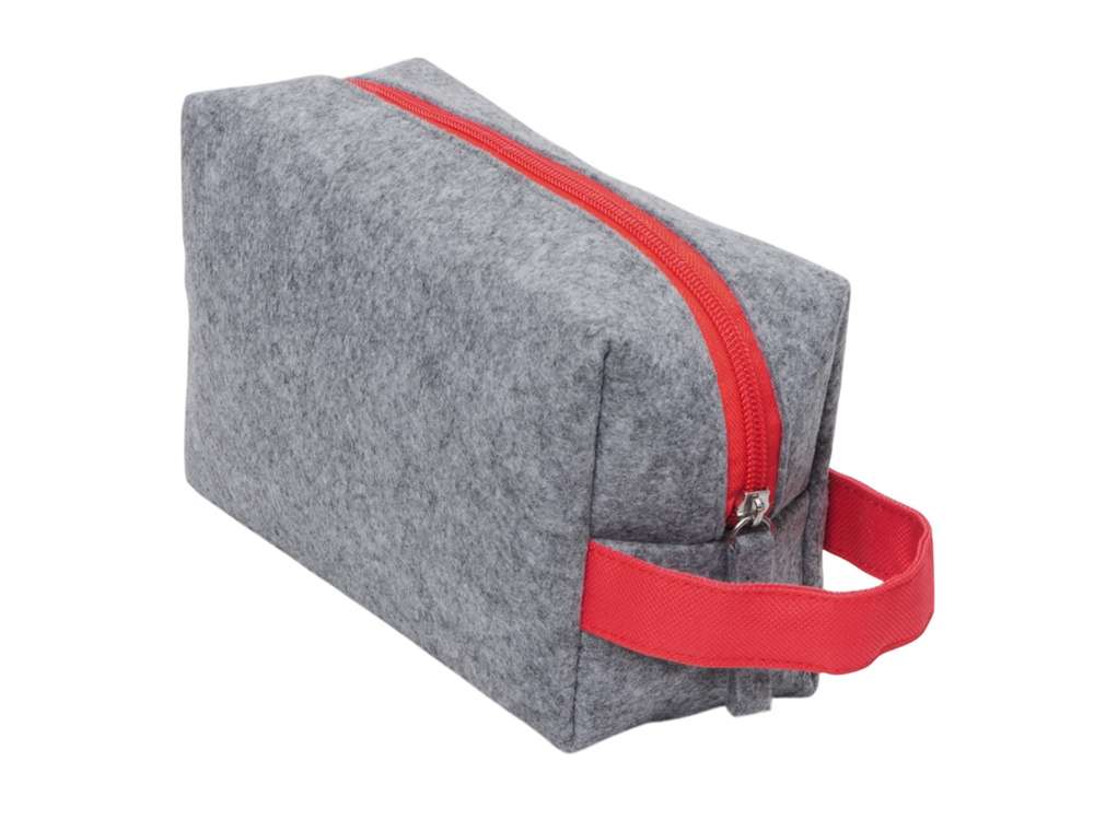 Косметичка из РПЕТ фетра с ручкой Felt, серый с красным