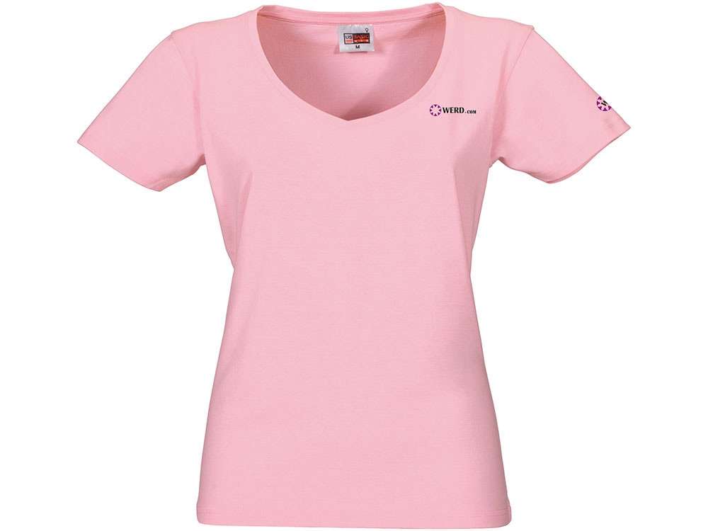 - Женская футболка из натурального хлопка с элегантным V-образным вырезом. Материал отлично подходит для нанесения рекламной информации. Натуральная ткань не вызывает раздражения кожи. Трафаретная печать (1 цвет (цветные изделия)) на данный товар осуществляется бесплатно. Оплачивается только настройка оборудования в размере 8200 рублей на весь тираж.