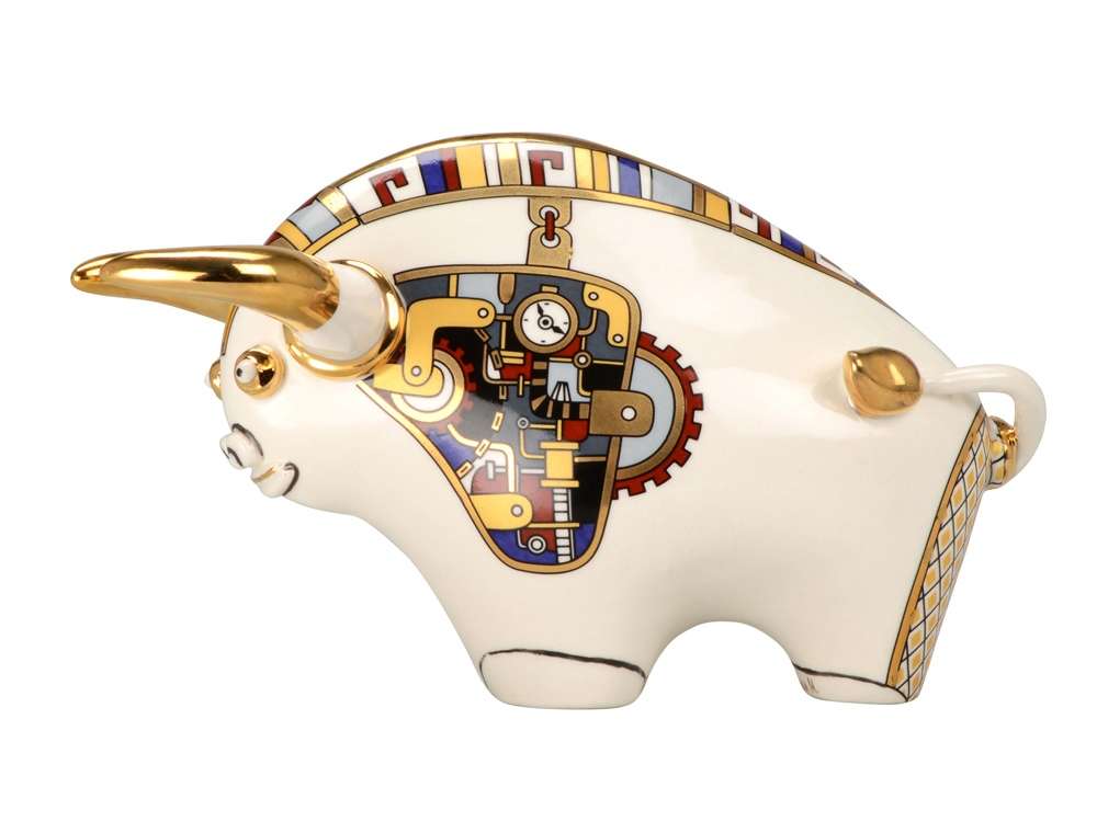 - Вы знали, что образ быка в фэн-шуе трактуется как символ стабильности и процветания? Скульптура Бык - это великолепный символический подарок с уникальной ручной росписью, выполненный в стиле стимпанк. Представьте себе мир, где паровые машины и другие ретро-технологии не исчезли, а достигли высочайшего развития. Так и выглядит стимпанк! Неповторимые формы, применение ручной работы необычного геометрического орнамента в комбинации с высокой техникой мазка дают изделиям Арт–Модерн керамики оригинальный колорит и притягательность, а небольшой объем производства и индивидуальная роспись делают изделия исключительными. Шильд спектрум (Шильд спектрум) на данный товар осуществляется бесплатно. Оплачивается только настройка оборудования в размере 950 рублей на весь тираж.