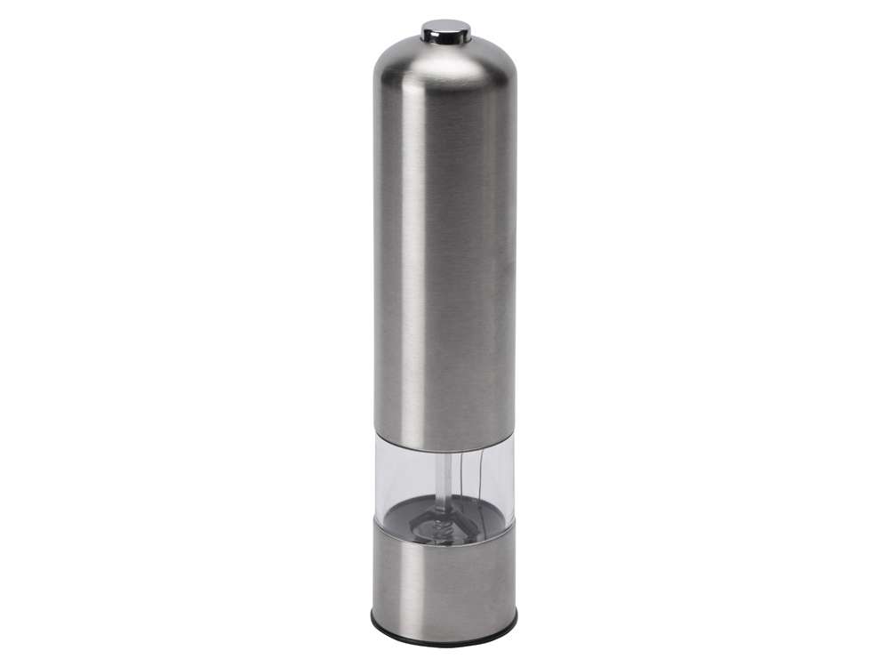 - Электрическая мельница Fresh mix от Eat&Bite подходит для измельчения крупной соли, перца и других специй. Для этого достаточно просто нажать на кнопку на корпусе устройства. Преимуществом добавления в блюда только что смолотых специй является сохранение их вкуса и аромата, которые не потеряются в процессе длительного хранения в уже измельчённом виде. Fresh mix позволяет удобно регулировать степень помола от грубого до мелкого с помощью винтового механизма под ёмкостью в нижней части мельницы. Благодаря прозрачной вставке вы всегда будете видеть содержимое и сколько его осталось. Наличие LED подсветки позволяет точно контролировать количество добавляемых в блюдо специй. Fresh mix работает от 4-х батареек типа АА (не входят в комплект). Жернова изготовлены из керамики и устойчивы к коррозии. • Удобная кнопка включения • Регулирование грубости помола • LED подсветка • Керамические жернова, устойчивые к коррозии • Работает от 4-х батареек типа АА Гравировка (оптоволоконный лазер) (Без чернения) на данный товар осуществляется бесплатно. Оплачивается только настройка оборудования в размере 1000 рублей на весь тираж.