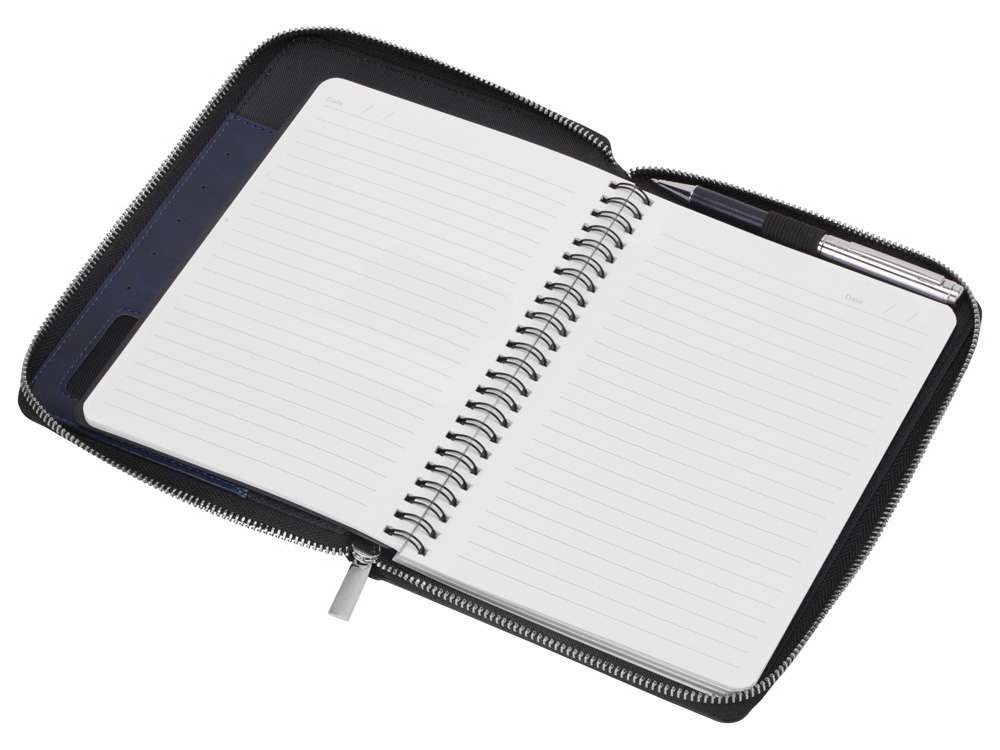 - Бизнес блокнот Fabrizio состоит из пенала на молнии выполненного из искусственной кожи, и сменной тетради на 80 листов на кольцах с перфорированными линованными листами белого цвета. Блокнот снабжен 5 отделениями для карт и RFID защитой, которая охраняет вашу личную и финансовую информацию от мошенников. В комплекте идет ручка, подходящая блокноту по стилю и цвету.